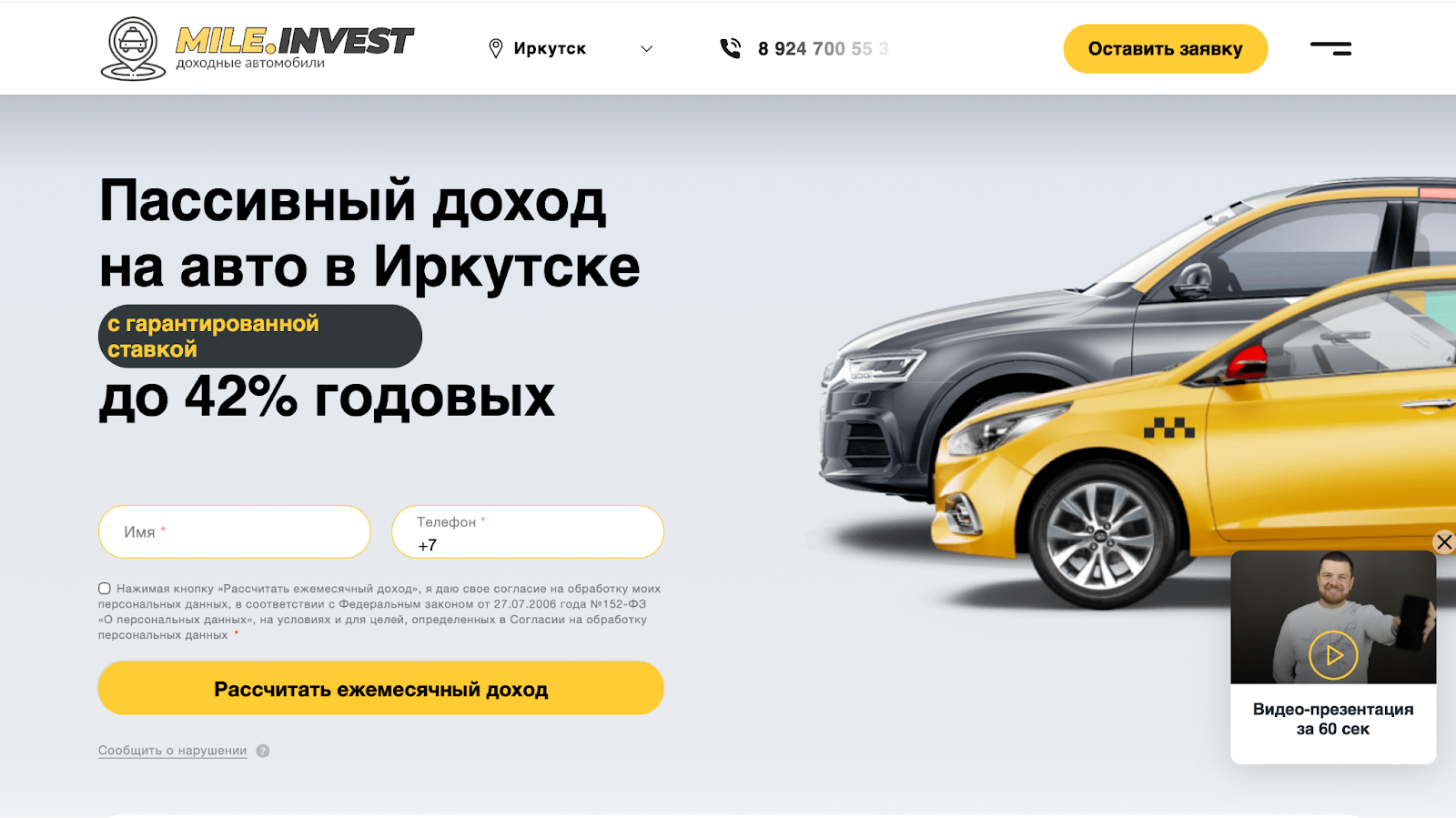 Сервис mile invest в Красноярске известен предложениями о пассивном доходе. Его владельцы советуют вложить деньги в автомобили и получать с этого ежемесячную прибыль. У этих ребят довольно активное присутствие в телеграмме. Каналы «Mile Invest Group» и «investitsiiavto» как раз продвигают эту идею. Популярна миля инвест среди жителей Иркутска. Слышали о ней и в Улан-Удэ.