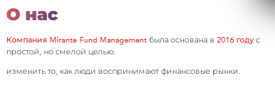 Признаки скама Mirante Fund Management