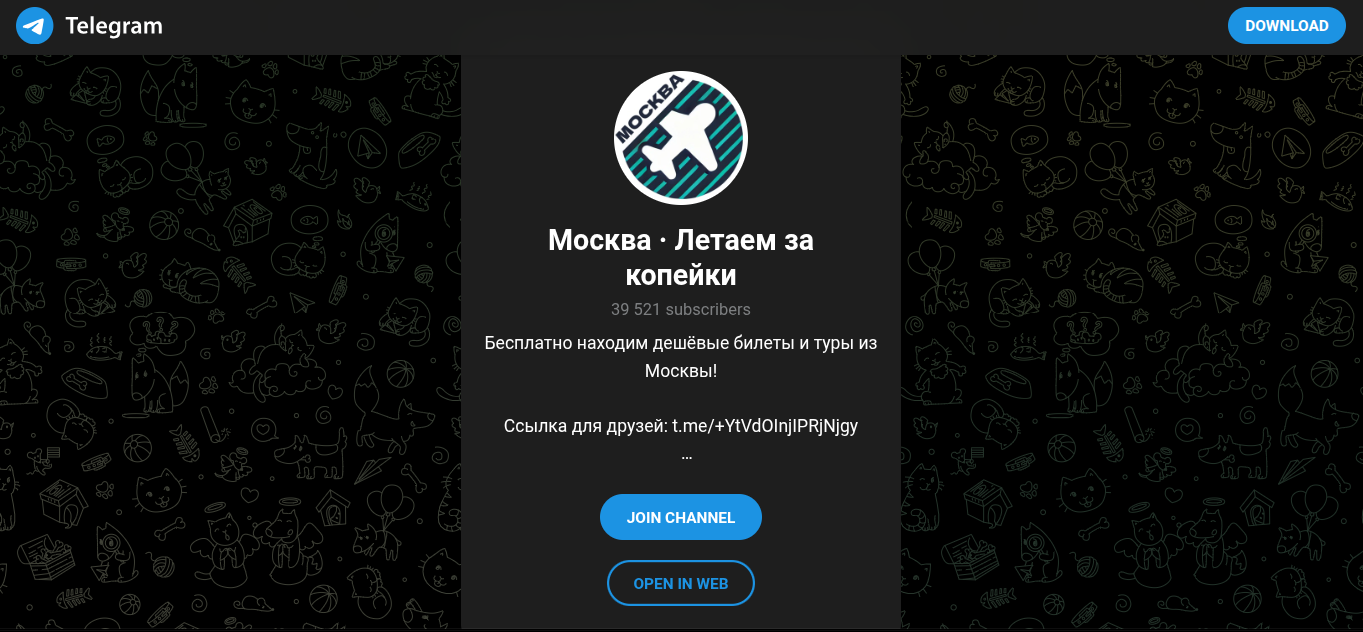Телеграмм-канал «Летаем за Копейки» в Москве — паблик с рекомендациями, где команда разработчиков рассказывает про актуальные акции у авиакомпаний. Кроме этого, менеджеры паблика, как они сами утверждают, собирают лучшие предложения от компаний. Благодаря этому, каждый подписчик в любой точке РФ получает советы, как ему экономить на авиаперелетах.