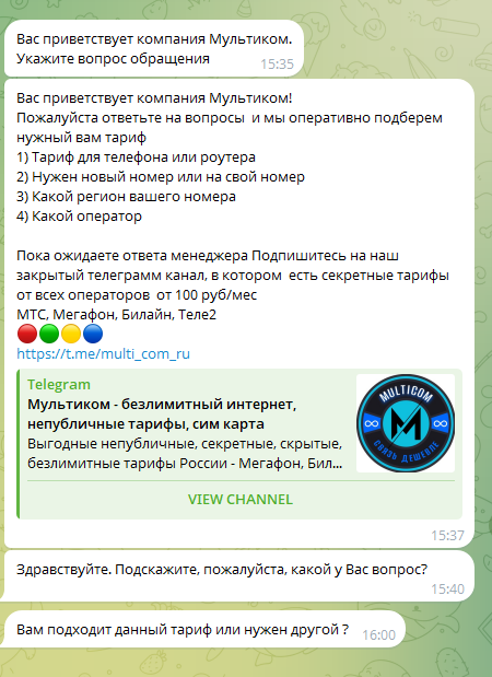 Проверка работы Телеграм-бота Мультиком: отзывы покупателей, безопасно ли покупать SIM-карты через multicomrf bot