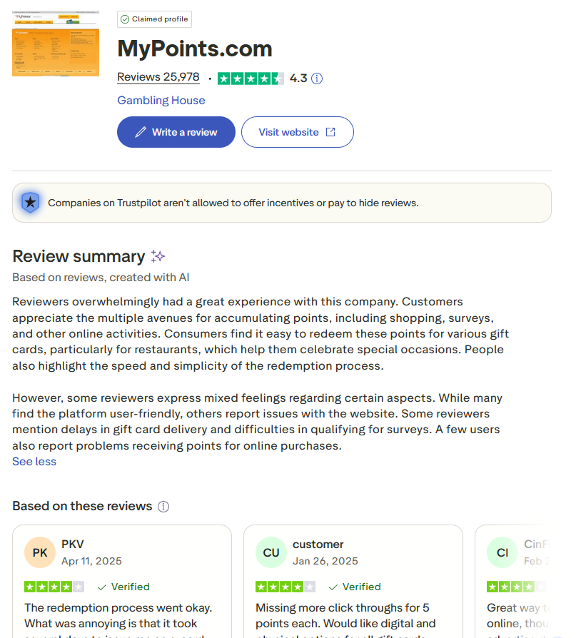 - на русскоязычных площадках встречаются отзывы MyPoints, где проект обвиняют в низкой оплате заданий и использовании баллов партнеров вместо реальных денежных средств.