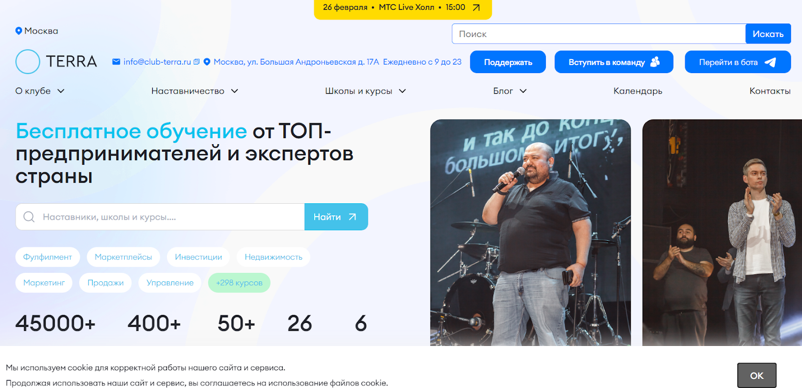 Terra предоставляет разнообразные направления и действительно предлагает свои образовательные услуги бесплатно. Однако реальный уровень профессионализма наставников не подтвержден, и из других сомнительных моментов мы отметили: