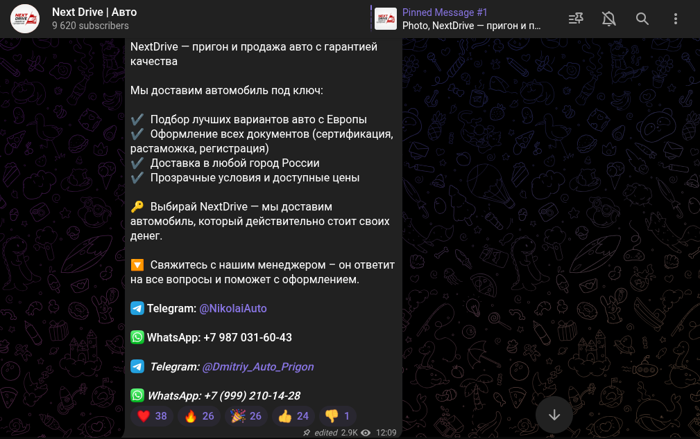 Подробности телеграмм-канала с авто Next Drive