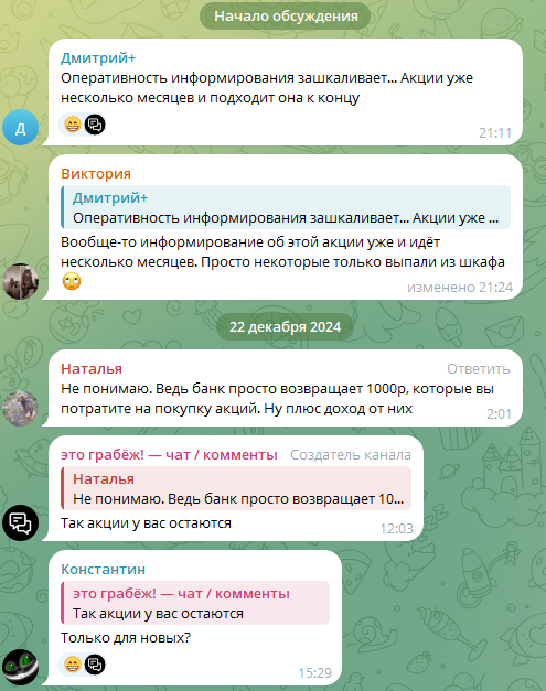 Хотя негативные отзывы админ оперативно удаляет, а активность под постами низкая, недовольство аудитории всё же заметно. Пользователи указывают на две главные проблемы. Первая: сведения про промоакции публикуют слишком поздно, когда ими уже нельзя воспользоваться. Вторая: автор часто искажает факты, чтобы навязать оформление карт и переходы по своим партнерским ссылкам.