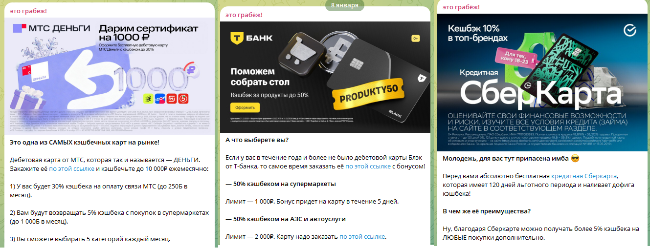 Проведенная проверка показала, что паблик не имеет никакого отношения к реальному обучению финансовой грамотности. По сути, весь канал автора представляет собой рекламную помойку, где продвигают банковские карты, сервисы и акции, а точнее — навязывают их подписчикам под видом полезных инструментов. Цель у этого контента одна — заработать на реферальных программах, а не помочь людям разобраться в финансах. Нельзя не отметить такие подозрительные моменты в работе канала: