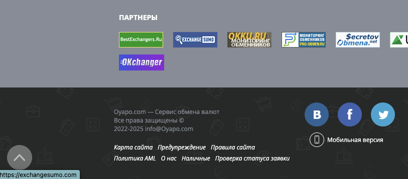 В интернете об онлайн-обменнике oyapo com отзывы не представлены, поэтому наша редакция сама изучила ключевые особенности этого сервиса, чтобы разобраться, что он собой представляет, и насколько безопасно совершать операции на нем.