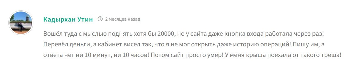 Еще один пользователь пишет, что пополнил депозит на данном сайте, после чего даже не смог зайти в личный кабинет. Поддержка просто проигнорировала запросы.