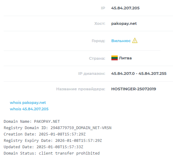 Домен сервиса «Пакопэй Бот» был запущен 8 января 2025 года со сроком работы – 1 год. Такой маленький период тоже говорит о несерьезности авторов. Причем площадке осталось работать всего одну неделю. Будут ли разработку продлевать – неизвестно.