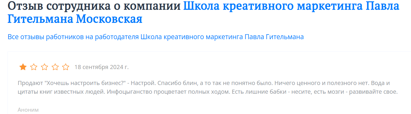 Если вы знакомы с Павлом Гительманом, проходили обучение у него, оставляйте отзывы. Это поможет другим сформировать более объективное понимание проекта и его реальной ценности.
