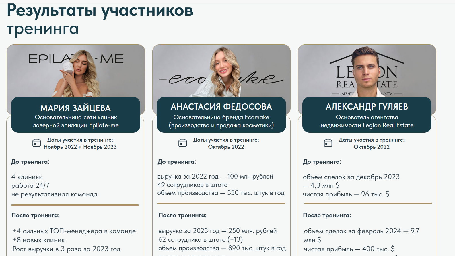 Обучение по курсу проходит в закрытом формате в группе из 5 человек. По заявлениям Гительмана, на нем дается уникальный материал. Его структура и описание есть на сайте gitelman team. Тут же выложены и результаты учеников. Все они якобы добились высоких результатов: расширили бизнес, увеличили прибыль.Для записи на тренинг предлагают заполнить простую форму: указать имя и номер телефона. После отправки заявки на связь должен выйти менеджер. Стоит обучение Павла Гительмана 1145 долларов.
