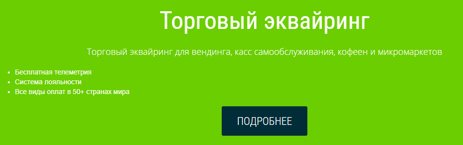 Примерно к той же категории относится и торговый эквайринг, т.е. оплата через терминалы на точках. Компания утверждает, что предоставляет бесплатную телеметрию в 50+ странах мира, однако списка этих государств нигде нет.