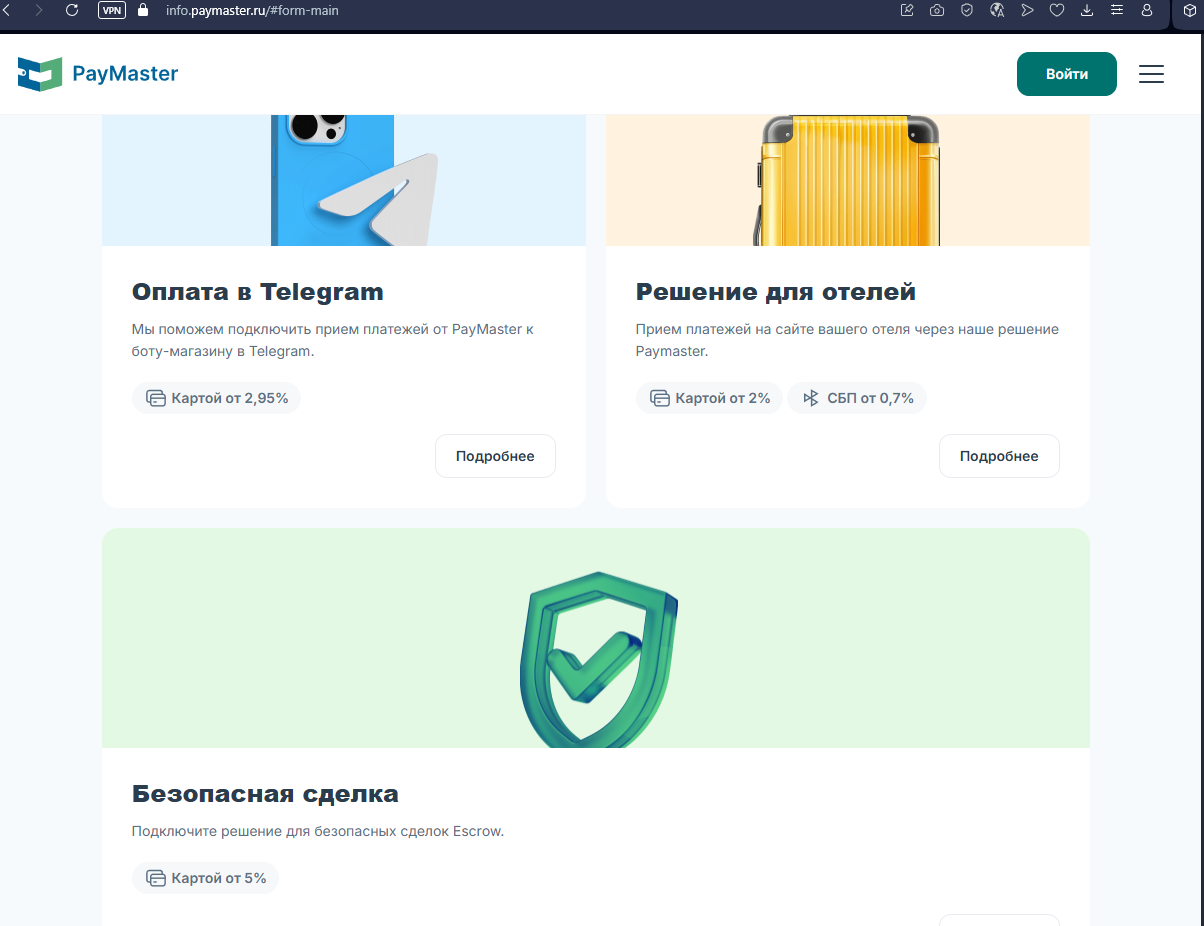 Заметим, что проект работает с терминалами, СБП, NFC и даже оплатой по биометрии. Также на «Пэймастер ру» есть связки с 1С, Iiko, R-Keeper, «Эвотор» и другими кассовыми решениями, так что чеки формируются автоматически. Выплаты идут ежедневно, кроме выходных, а деньги хранятся на московских серверах, что закрывает вопрос закона о персональных данных.Из сомнительного выделяют жесткие требования к сайту клиента: обязателен платный хостинг, политика конфиденциальности и полное описание товара на русском языке.
