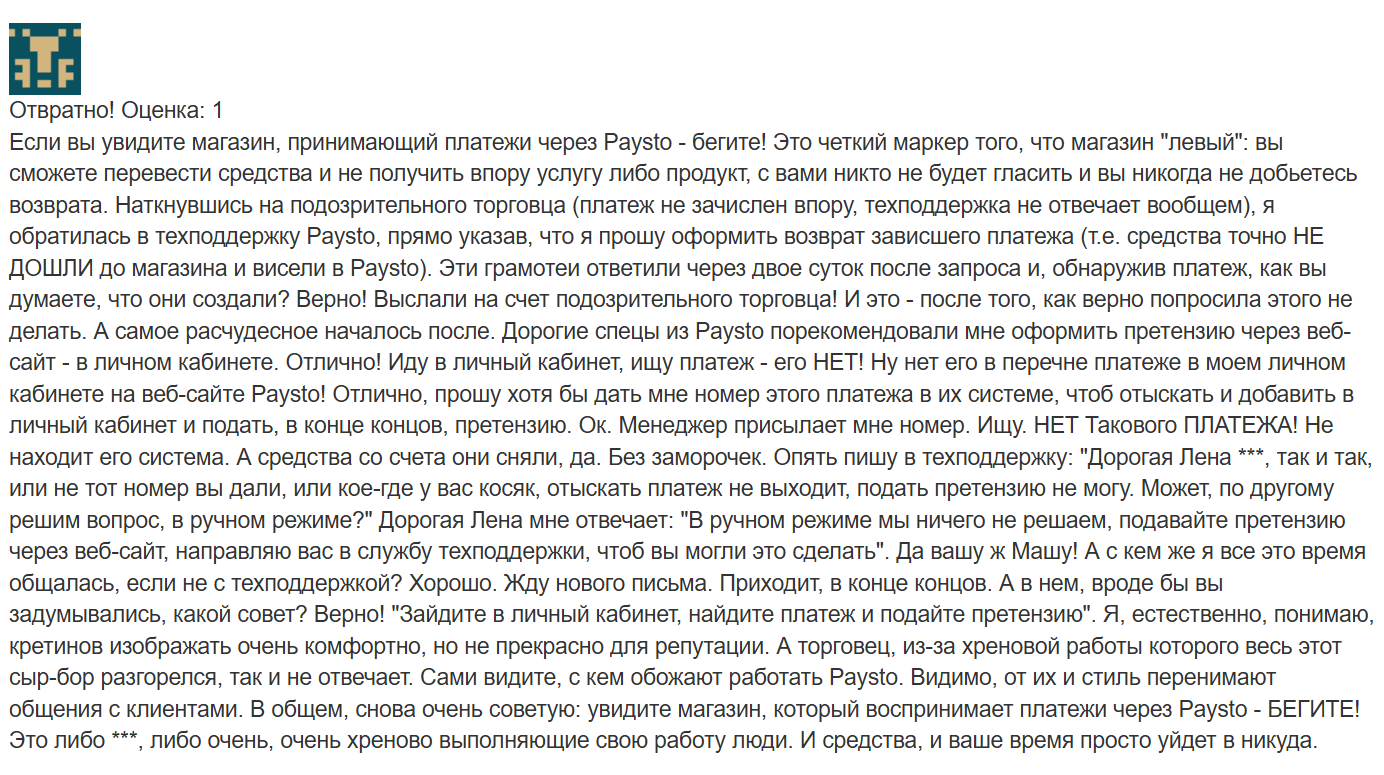 • отзывы о Paysto неоднозначные.