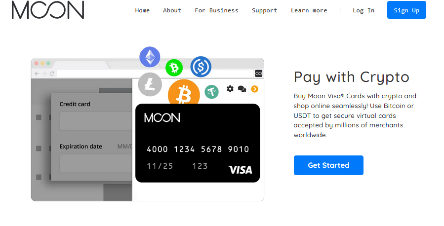 Платежная система PayWithMoon com работает с 2018 года. Это американский криптовалютный сервис, предназначенный для быстрых и простых расчетов в интернете. Подходит для совершения анонимных оплат, обмена крипты на доллары США. Оформление виртуальной карты ВИЗА не требует сложной верификации, сделать это можно бесплатно на сайте.