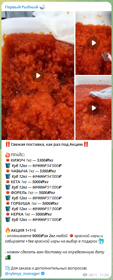 Обзор телеграм-магазина «Первый Рыбный», проверка работы и отзывы покупателей о качестве продукции Perviy Ribniy