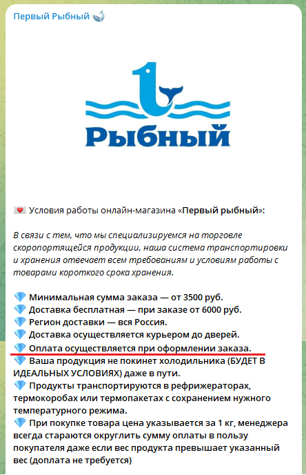 Условия заказа в телеграм-магазине «Первый Рыбный»