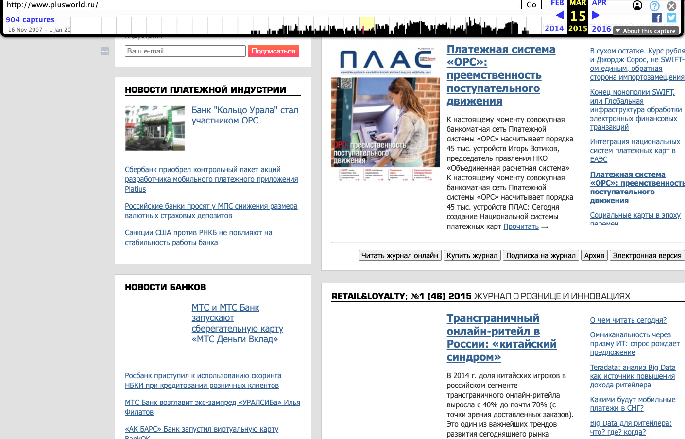 Издание «Плюс Ворлд» существует уже много лет. В этом легко убедиться, если запросить снимки его сайта из сервиса «Веб-архив».