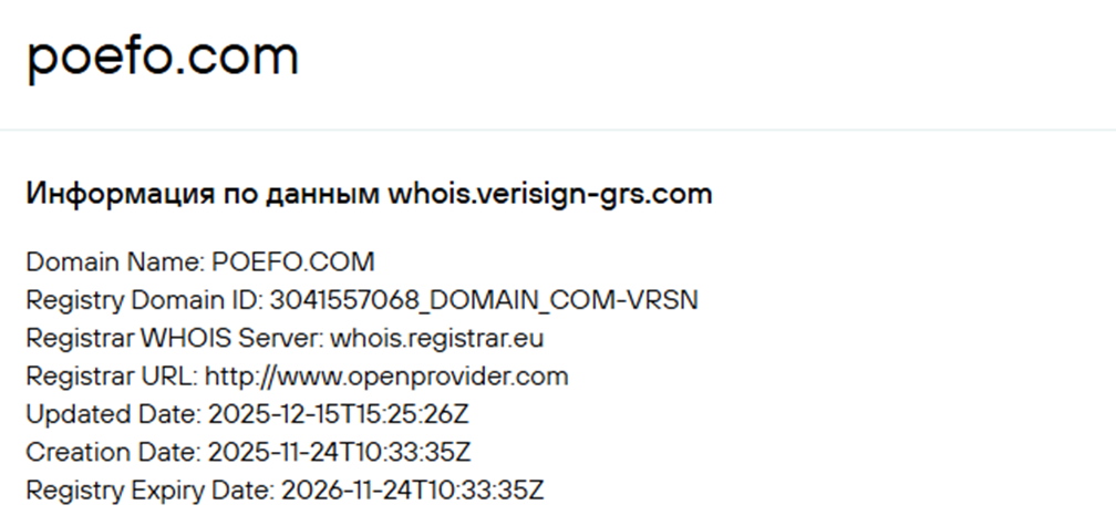Но проверка домена показала, что сайт на самом деле начал работу в ноябре 2025.