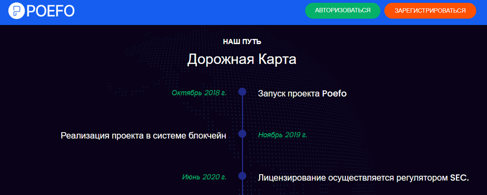 Настоящий срок работы Poefo не соответствует заявленному. В дорожной карте сказано, что запуск криптокошелька состоялся в 2018 году.