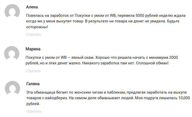 Отзывы пострадавших в проекте «Покупки с умом от ВБ»