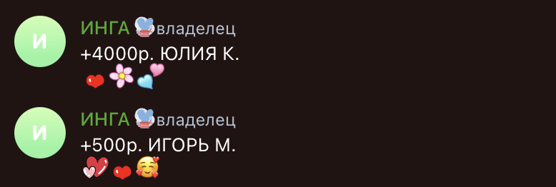 Также Инга не публикует чеки с переводами на канале, прописывая пополнения текстом. Она лишь указывает имена и первые буквы фамилий отправителей, ставя рядом благодарные эмодзи. Для надежного благотворителя подобное выглядит просто несерьезно.