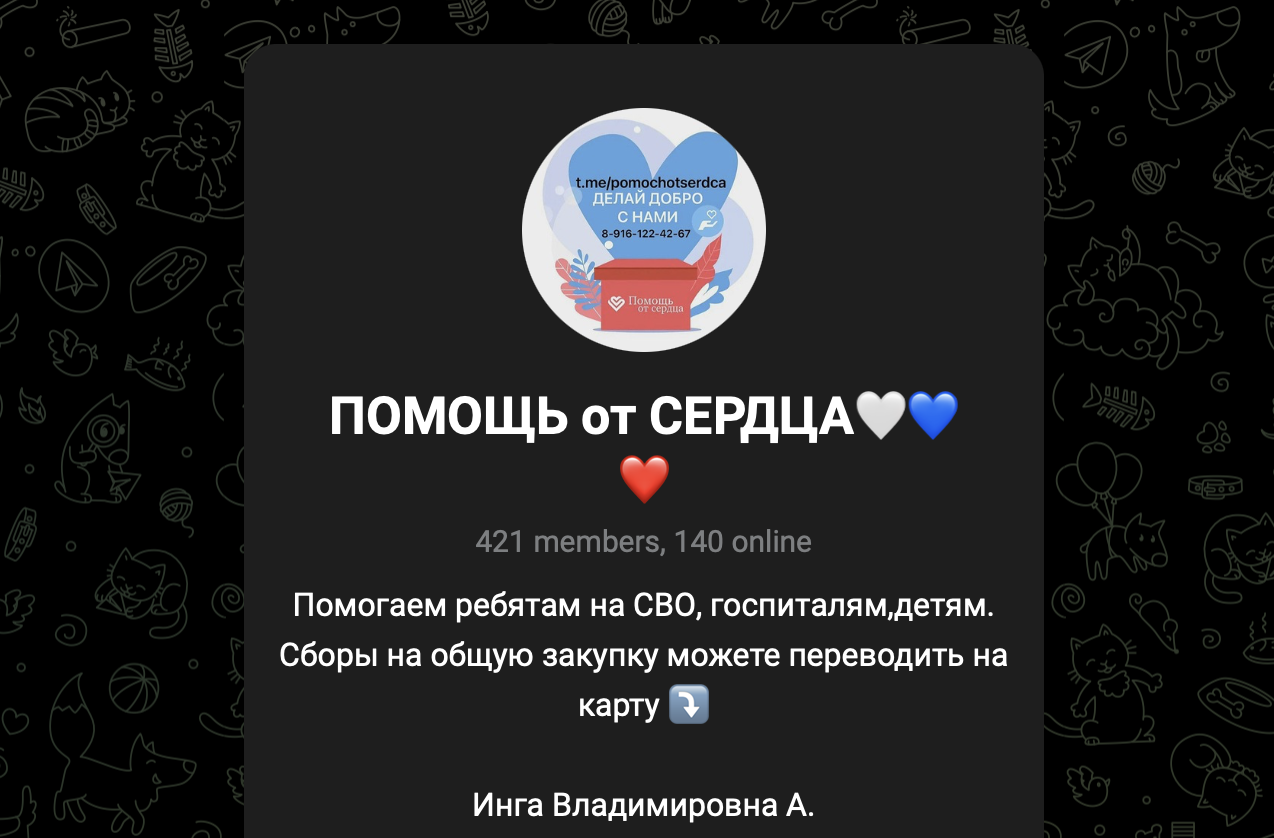 «Помощь от сердца» — телеграмм канал, на который нет достоверного отклика и независимых мнений. Даже в рамках самого сообщество не получается найти подробного комментария о работе «фонда».