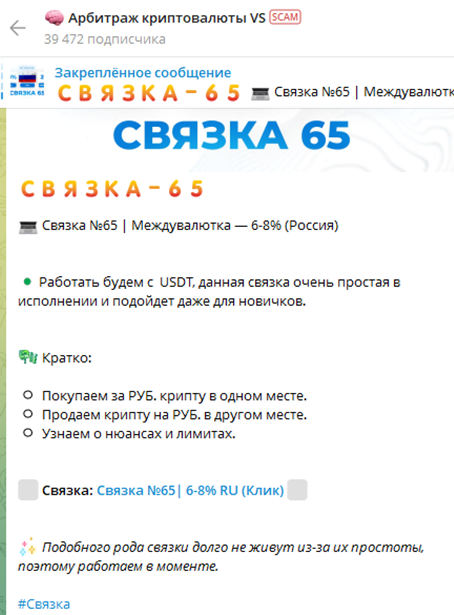 Но важно понимать, что прозрачность проекта нулевая. Реальных подтверждений того, что связки проводятся на проверенных платформах нет. Более того, канал «Арбитраж криптовалют ВС» получил от Телеграма отметку SCAM, в связи с жалобами пользователей. Админы этот факт проигнорировали и никак не прокомментировали ситуацию.