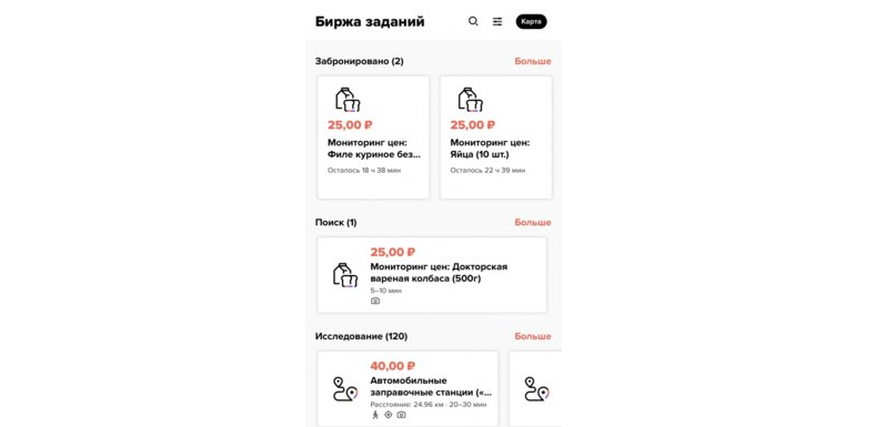 У заработка в приложении Premise есть 2 категории заданий: ежедневные, исследования. Первые — стандартные задачи из ряда фотографий карточек товаров. Оплата за них от 10 до 50 рублей. Вторые — класс более сложных заданий с выплатами до 100 рублей.