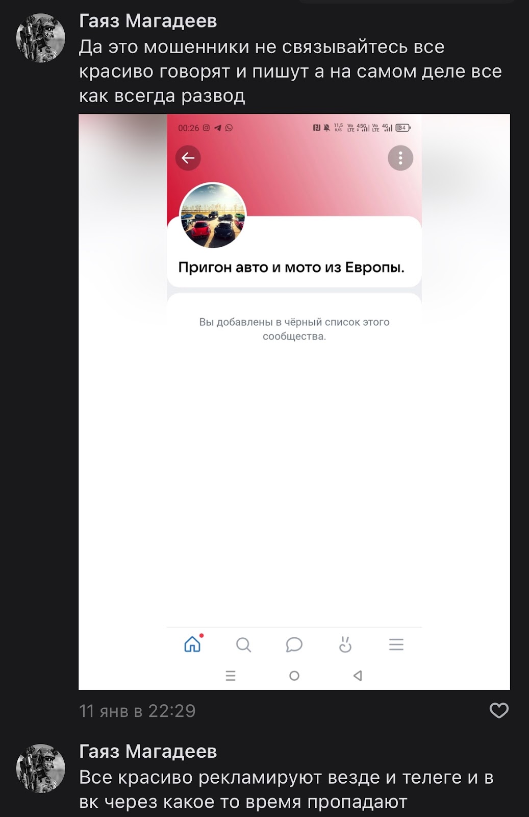Группа выглядит как типичный коммерческий ресурс по пригону авто. Однако это не гарантирует, что автор не мошенник, но и автоматически не делает тгк безопасным.