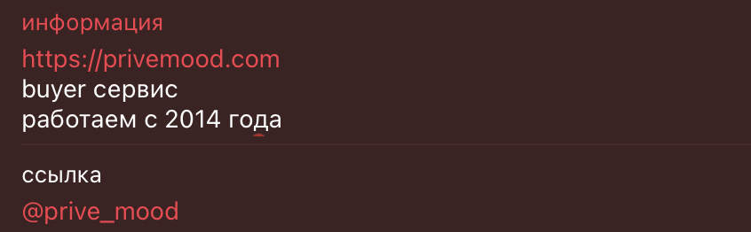 Сервис Privemood Com лишь пытается создать образ легального и солидного байера с богатым опытом. На деле мы имеем только собранный на коленке сайт, телеграм-канал с фейковыми отзывами и отсутствие юридического статуса.