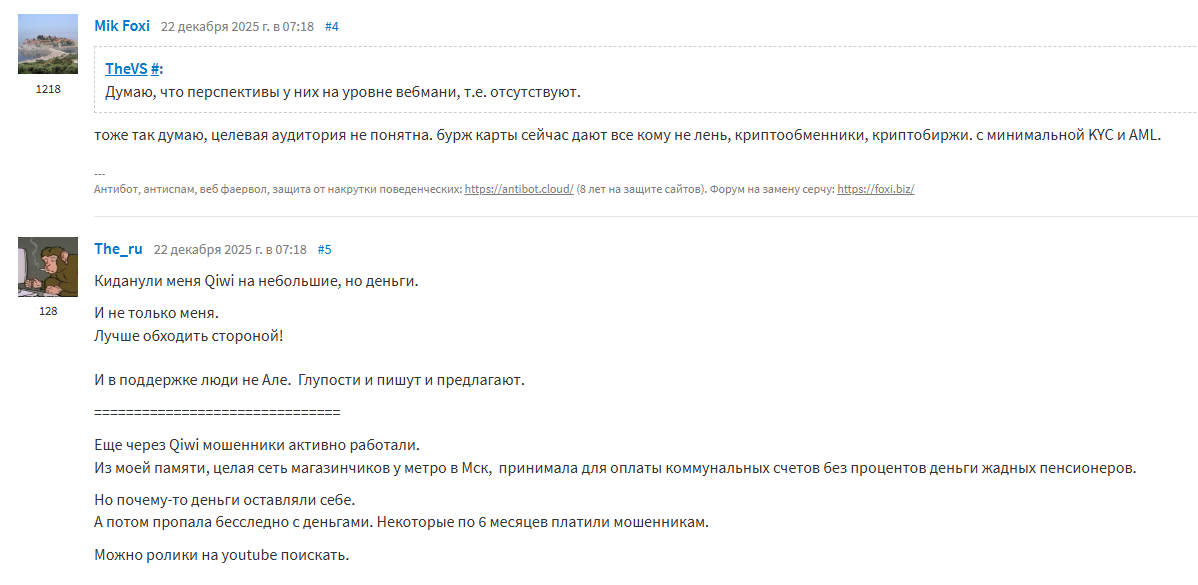 В отзывах отсутствуют массовые обвинения Qplus в мошенничестве, однако доверие к проекту остается сдержанным. Чаще всего пользователи интересуются, почему не работает кошелек Qplus или когда будет доступна виртуальная карта.