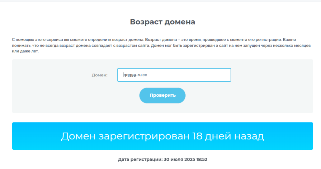 Официальный сайт идентичен ресурсам gloabestincome com, gloabestincome cc, globalbestgo cc, globalbestgo top, globalbestgo vip и многим другим порталам, обвиненным в мошенничестве. Упомянутые веб-сайты использовались аферистами в 2024 году для развода наивных пользователей на деньги.В процессе проверки наша команда выяснила, домен qqg 99 com был зарегистрирован 30 июля 2025 года. На момент обзора ресурсу исполнилось всего 18 дней. На веб-сайте в свободном доступе нет информации о компании, лицензии, регистрационных документах. Перечисленная документация не предоставляется пользователям и после регистрации на платформе. Все факты в комбо говорят о мошенничестве и разводе со стороны создателей проекта.