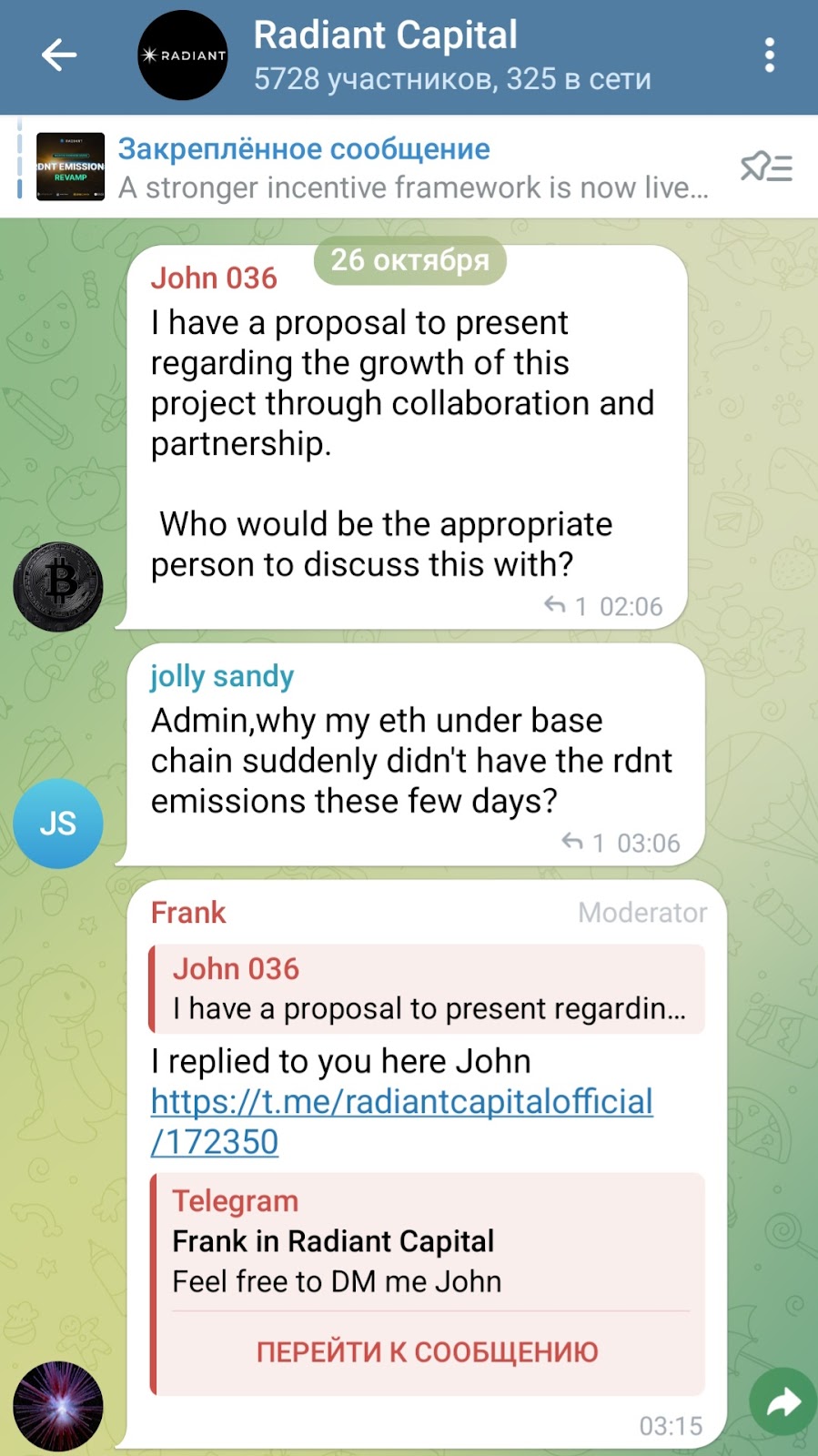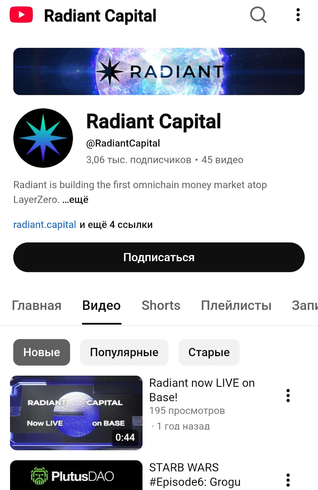 У проекта есть чат в Телеграмм — radiantcapitalofficial. По состоянию на 28 октября 2025 год у него 5728 подписчиков. Общение ведется неактивно. Аудитория в основном англоязычная. Также есть канал на Ютубе Radiantcapital. У него чуть больше 3 тысяч подписчиков и выложено 45 видео о криптовалюте Rdnt, ее особенностях и перспективах. Их просматривает около 200 человек и практически никто не комментирует.
