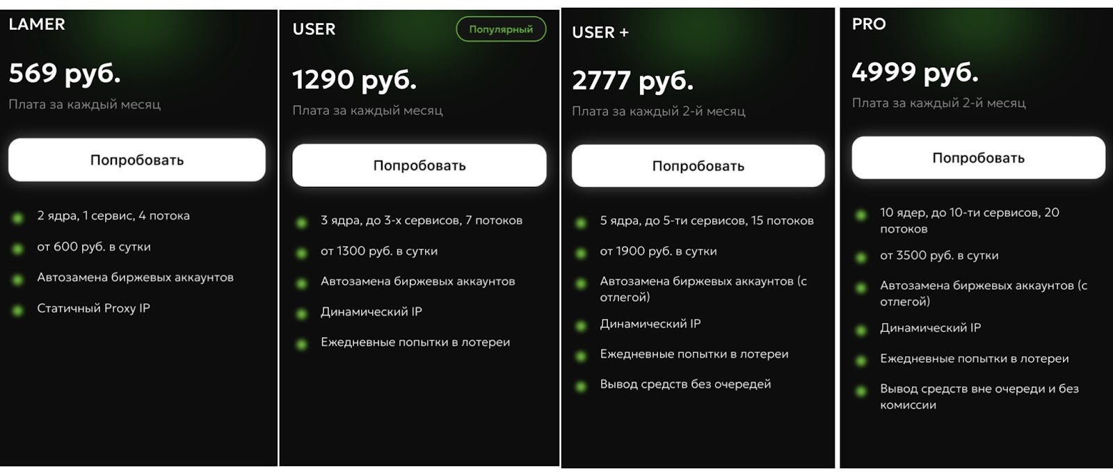 Помимо того, что потенциальным клиентам застилает глаза одна мысль об огромных деньгах, выплаты которых еще не доказаны, Раптор шоп привлекает большим количеством тарифов.
