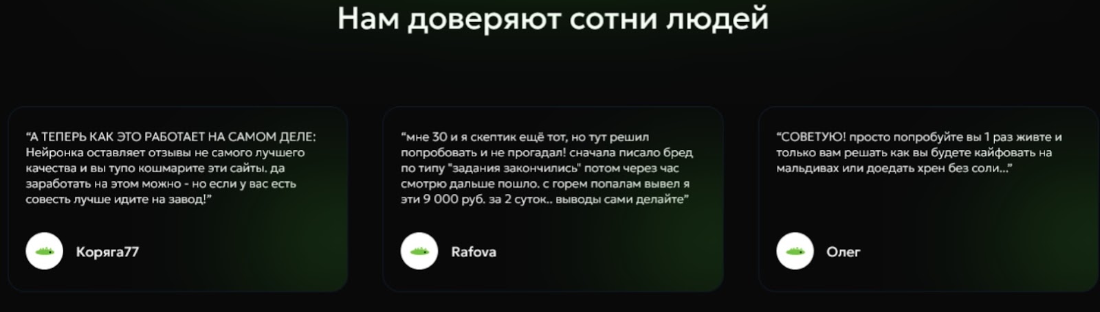 В первую очередь отзывы на Раптор бот для заработка можно изучить на самом сайте. Разработчики любезно опубликовали несколько комментариев. Однако их происхождение нам неизвестно — их могла написать сама администрация портала.