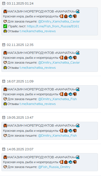 На независимых сайтах невозможно найти отзыв о ТГ канале Русское Море. Telegram @russkoe_more сначала продавал через интернет икру, рыбу и другие морепродукты под одним названием, но потом поменял его. Теперь это проект КАМЧАТКА Морепродукты.