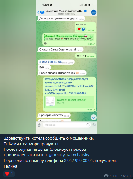Телеграм канал Русское Море выглядит как сомнительный проект. В сети нет ни одного отзыва о том, что кто-то получил свои рыбные продукты. Администратор блокировал клиентов сразу после получения предоплаты.