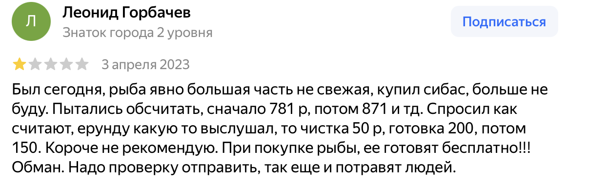 Мы не рекомендуем рисковать здоровьем и средствами: на поставщика свежей рыбной продукции данный магазин не похож. В комментариях вы всегда можете высказать честное мнение и поделиться личным опытом.
