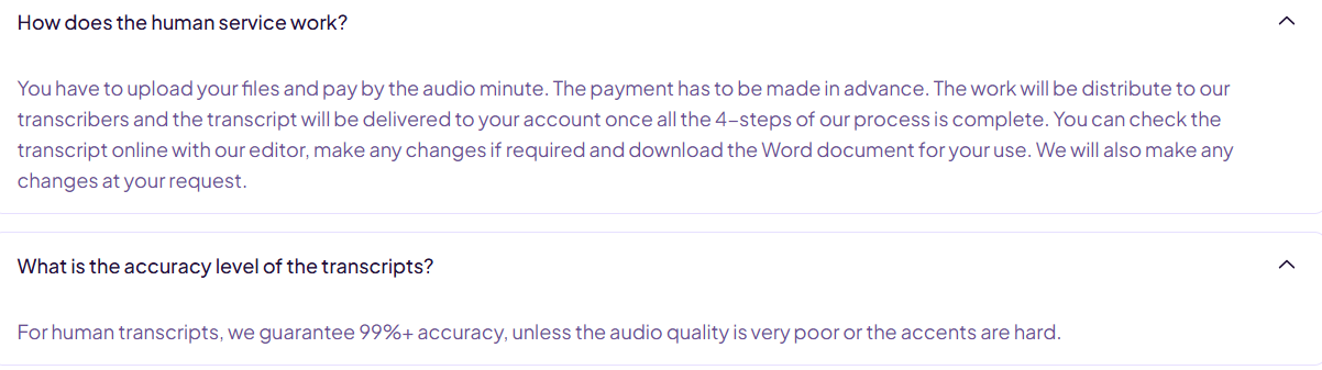 Таким образом, час записи в стандартной обработке оценивается в 48 USD, а при включении всех надбавок стоимость существенно возрастает. Scribie принимает оплату картами и PayPal. Для крупных заказчиков предусмотрены корпоративные счета с выставлением контрактов и оплатой по ACH. В отличие от фриланс-площадок, комиссия не зависит от объема текста — модель основана исключительно на длительности аудио.