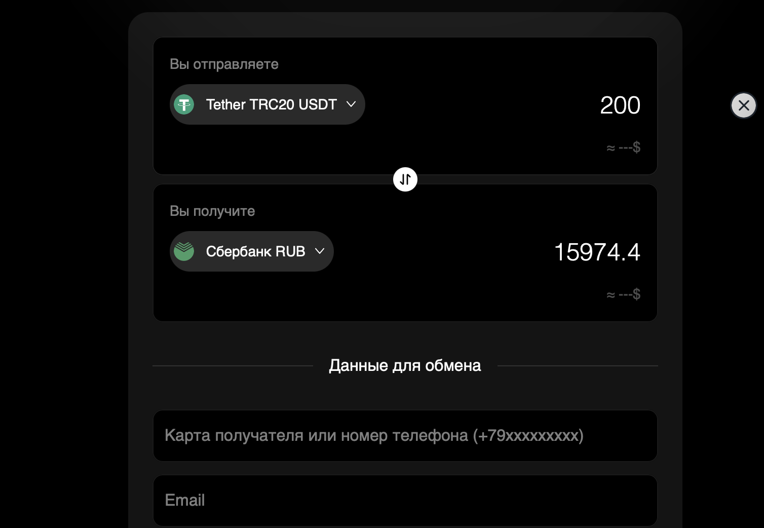 Функционал обменника касается не только цифровых активов: он активно работает и российскими рублями. Обменные операции в рублях можно производить разными путями, включая «Сбер», «Альфа», «Т-Банк» и «Систему быстрых платежей». В перечень стандартных направлений включена конвертация и вывод наличными в евро и долларах.