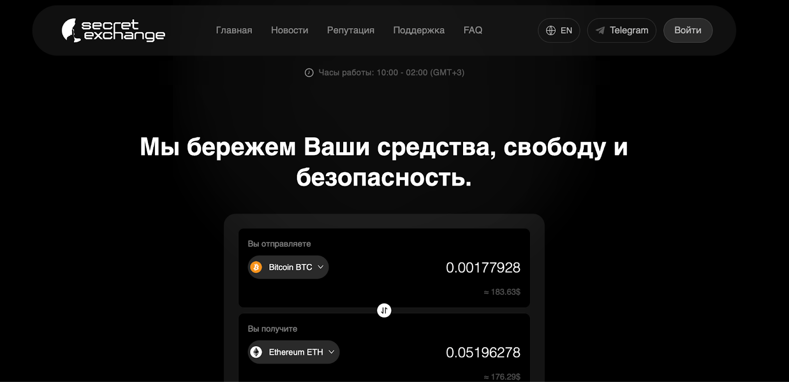 Наша редакция решила лично протестировать возможности Secret Exchange, оценить его интерфейс и безопасность.