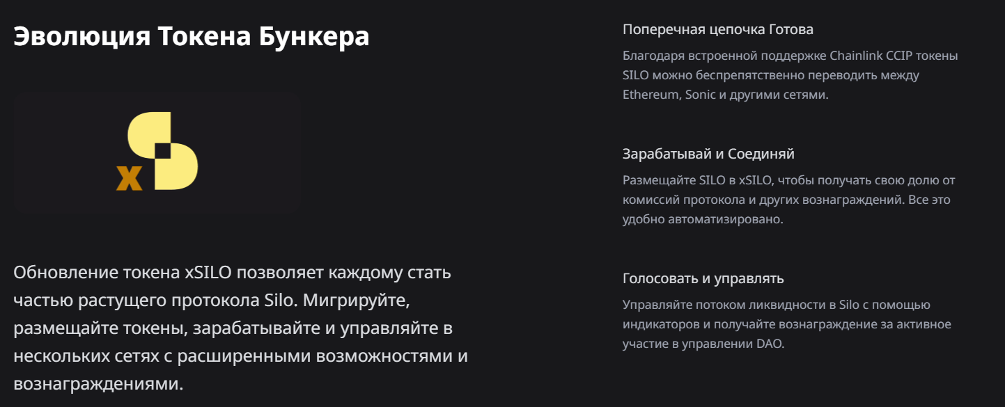 Токен является фирменной криптовалютой компании Silo Finance. Монета входит в экосистему некастодиального банка организации.