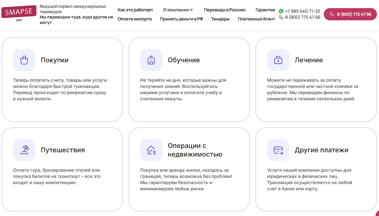 О компании публикуют много разных отзывов, приписывают услуги, которые организация никогда не оказывала. Разберемся, что правда, а что ложь в Smapse Pay, ниже представлен список актуальных возможностей платежной системы: