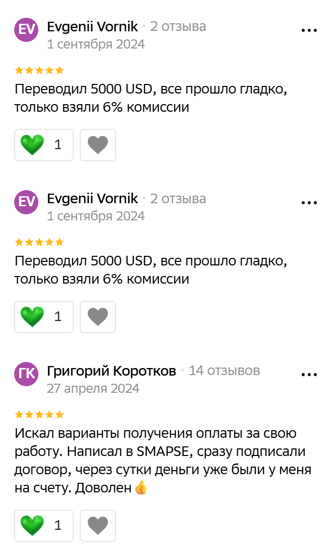 Отзывы о переводах Smapse Pay преимущественно позитивные. Жалобы и недовольные клиенты тоже есть, но их существенно меньше. Так пользователи отмечают, что организация может затребовать дополнительные документы при оплате товаров, предоставляет платежные поручения с опозданиями. Однако свои обязательства компания исполняет в любом случае.
