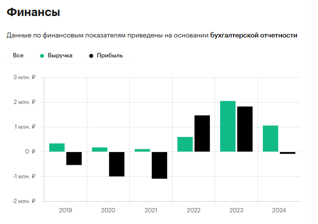 - Компания показала убыток за 2024 год при выручке чуть больше миллиона.