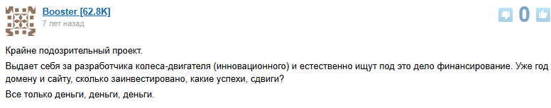 Другой пользователь назвал проект подозрительным. За год существования домена нет информации о результатах. Неясно, сколько денег собрано и какие достижения получены. Вопросы остались без ответов.