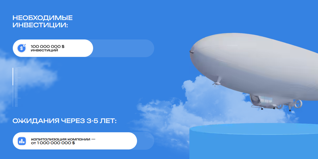 Дирижабли от «Солар групп» позиционируют как высокодоходный бизнес. По информации с сайта «соларгрупп про» нужно собрать 100 миллионов долларов. Через 3–5 лет капитализация должна вырасти до 1 миллиарда. Первые суда обещают запустить в ближайшие 2–5 лет. В 2026 планируют перевозить пассажиров. В 2027 году – грузы.