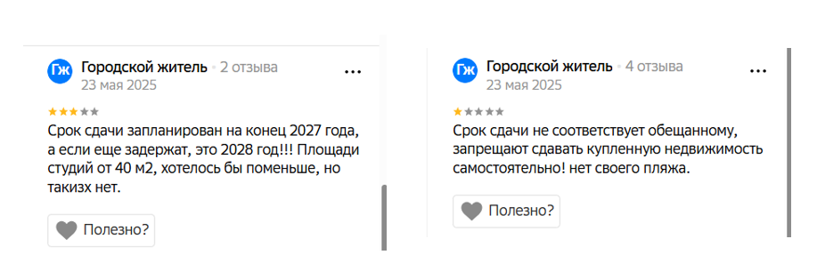 А с другой стороны, люди жалуются как раз на сдвиг сроков сдачи (2027 г. рискует превратиться в 2028 г.), нехватку компактных студий и то, что покупателям не разрешают самостоятельно сдавать квартиры.
