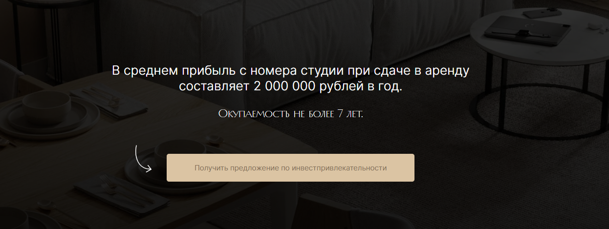 Все, что нужно — это связаться, получить презентацию, сделать первый взнос и ждать сдачи объекта в 2027 г. Цель: вызвать доверие и эмоциональный отклик у потенциального покупателя “хочу вложиться, это отличная инвестиция, все прозрачно”.