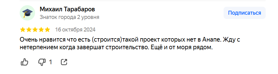 Ряд клиентов выделяет проект, среди существующих в Анапе, масштабностью и размахом.